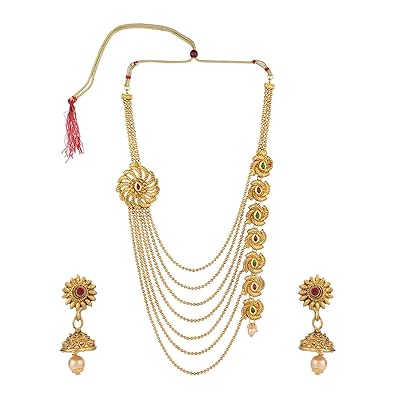 Indian 22k gold plated bollywood 9 long gorgeous necklace earrings tikka set for daily use set and for different occasions such as ring ceremony wedding partyceremony or any festive occasions. Our wide selection is elegible for free shipping and free returns.