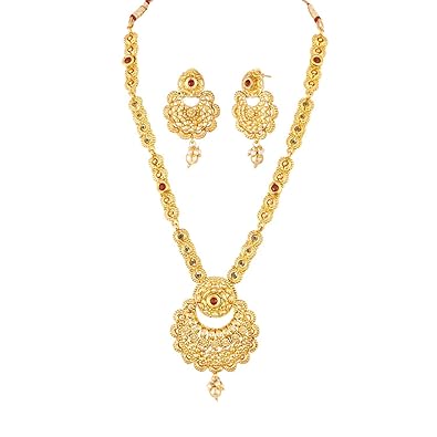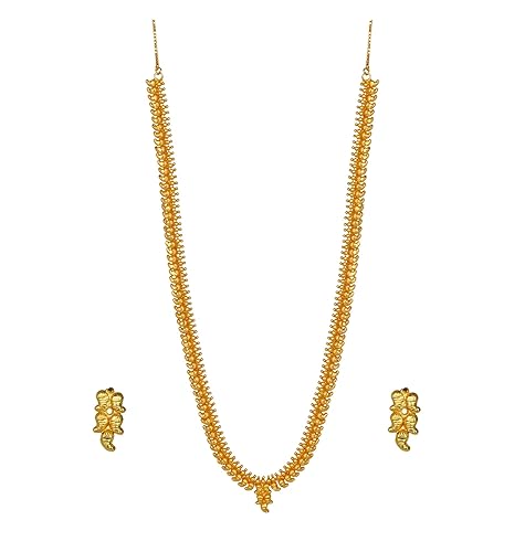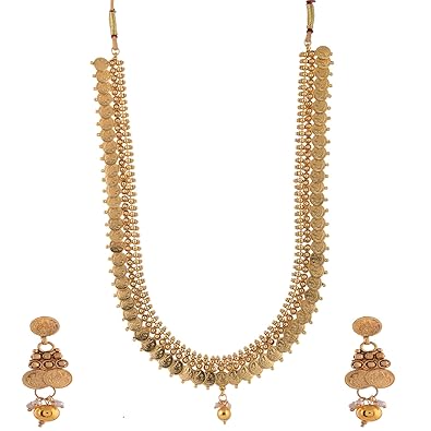 Adoreva Gold Plated Alloy South Indian Traditional Fashion Bridal Long Necklace Earring Set For Women