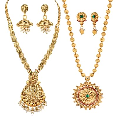 Reeva South Indian Gold Plated Necklace And Earring Set For Women Combo Pack