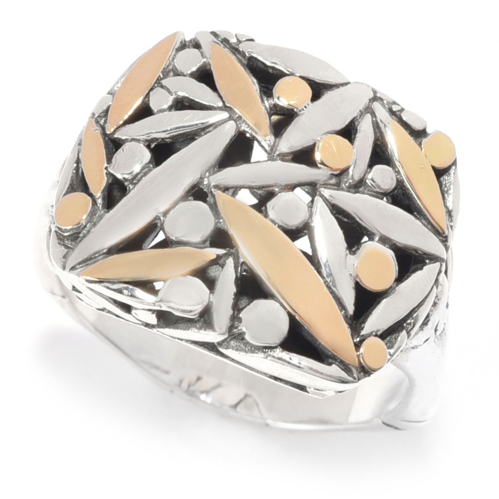 Artisan Silver By Samuel B 18k Gold Accented Leaf Ring